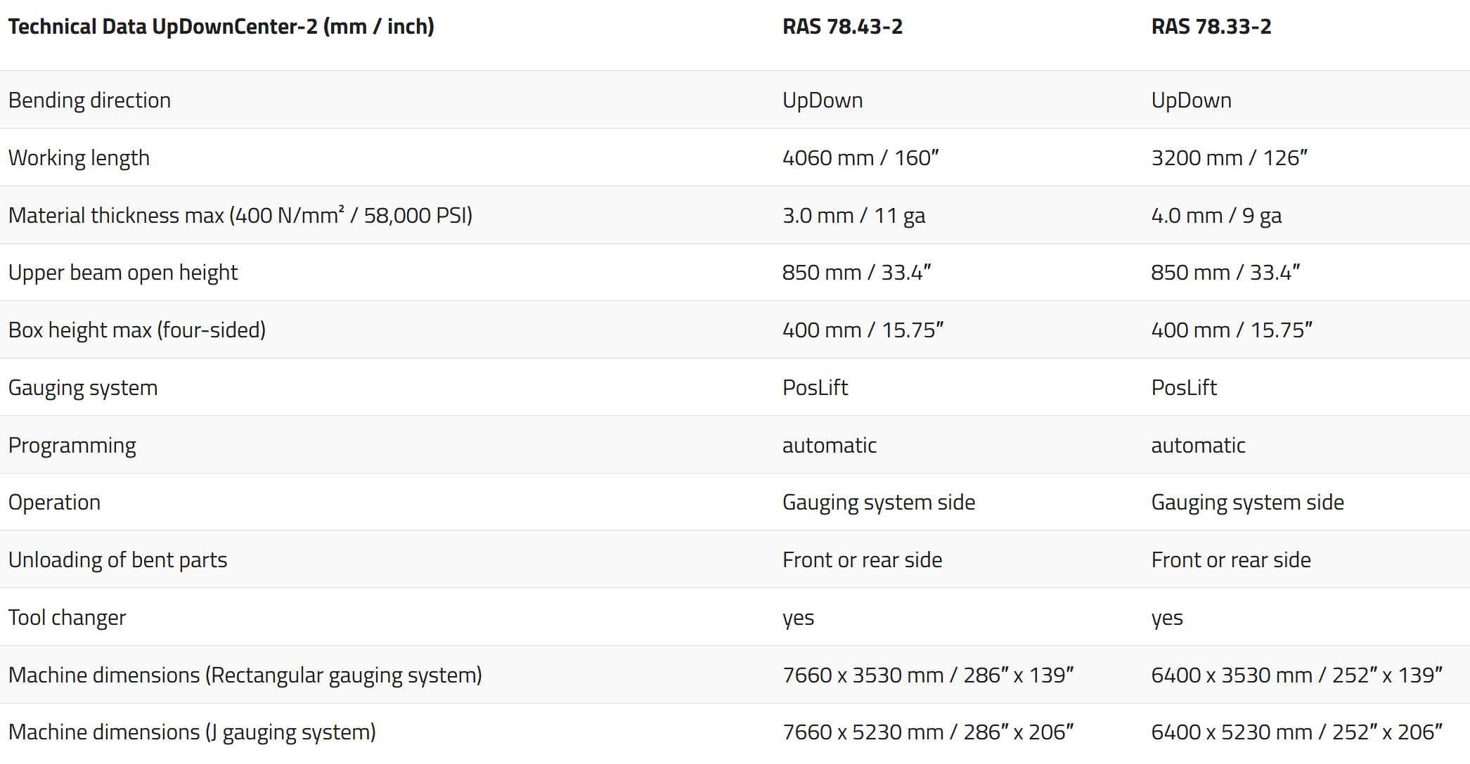 UpDownCenter-2 Technical Specifications